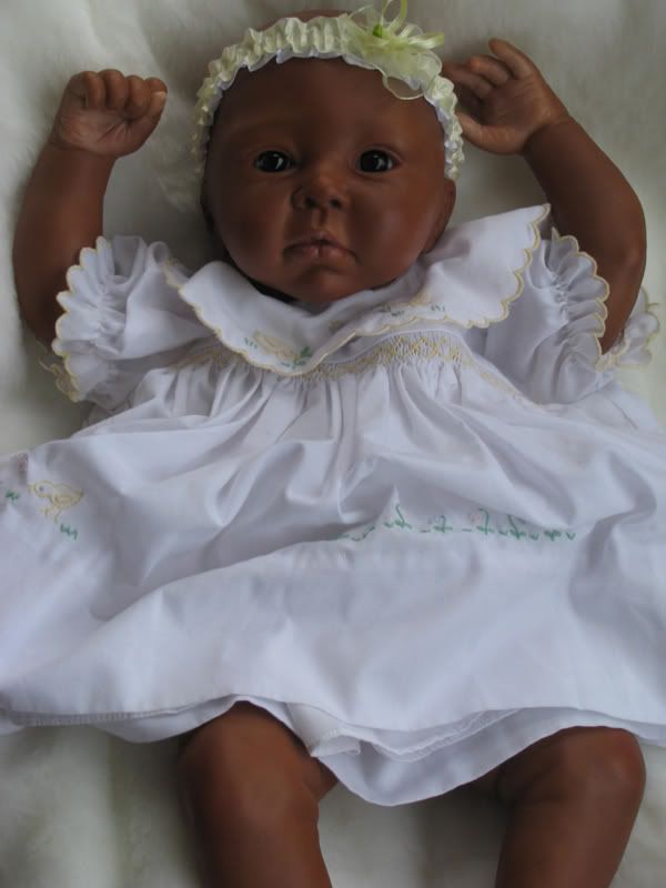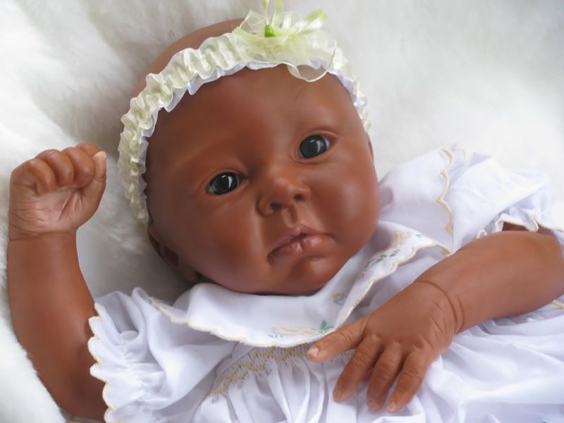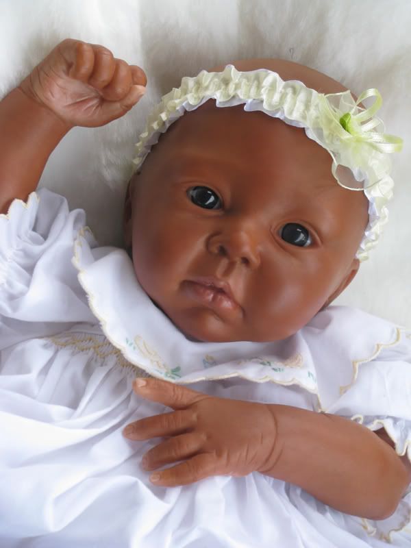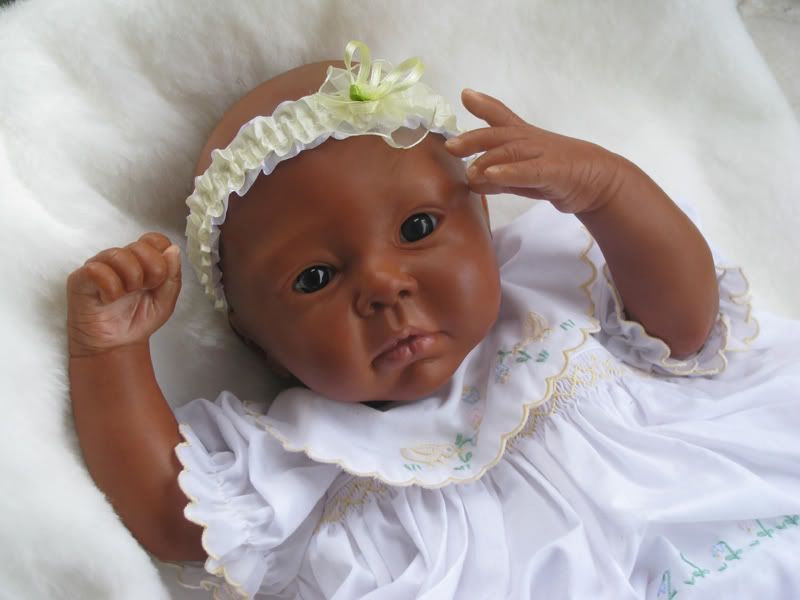 Most of you know that I have been trying my best to get a baby VERY dark! I always seemed to stop short of the color I wanted. Well..here's my closest success! She still needs detailing (eye lashes, brows, finger tips & toes, & lips) & a couple more flesh layers but I think she's the cutest! She'll be coming soon!